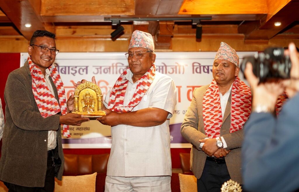 नेपाल पत्रकार महासंघ भक्तपुर शाखाका अध्यक्ष सुन्दर शिल्पकारले सूर्यविनायक नगरपालिकालाई कार्यक्रमका लागि सहयोग उपलब्ध गराएकोमा आभार प्रकट गर्दै वर्तमान डिजिटल युगमा मोबाइल पत्रकारिता आवश्यक भएको बताउनुभयो ।